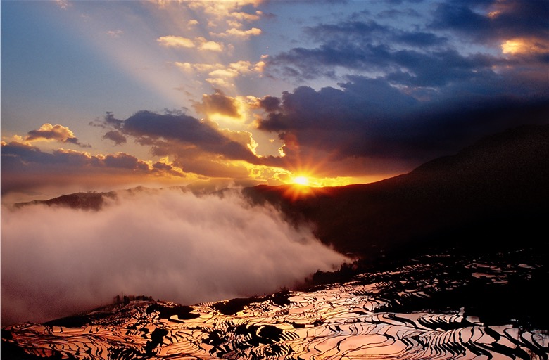 2013年,紅河哈尼梯田被列入世界文化遺產(chǎn)名錄。元陽(yáng)縣境內(nèi)峰巒疊嶂,云海浩瀚,林海、梯田、云霧,讓元陽(yáng)梯田更加秀美壯觀,氣勢(shì)磅礴。