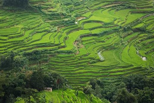 這種傳統(tǒng)農(nóng)耕文明下產(chǎn)生的梯田是哈尼族人通過世世代代的努力,雕刻出的偉大景象。他們開墾梯田時隨山勢地形變化,因地制宜:坡緩地大就開墾大田,坡陡地小則開墾小田。
