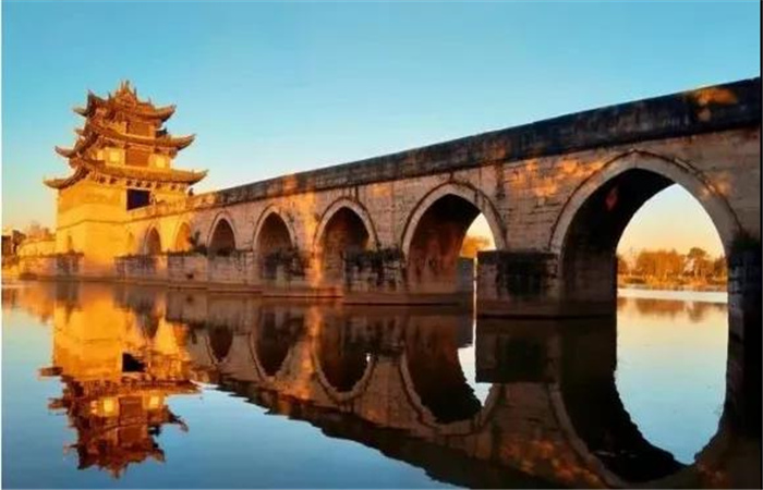 白云投影在橋下的水波之中,又讓這座古橋仿佛是一座琉璃碧瓦的空中樓閣、云上瀛洲。