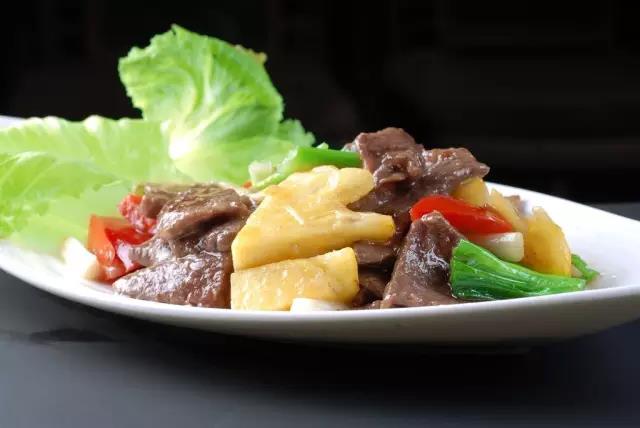 將菠蘿去皮,切成薄片,倒進(jìn)油鍋里炒肉絲,起鍋時(shí)灑上蕪荽、蔥葉,美其名曰“菠蘿炒肉”。肉絲只能用豬肉,否則會(huì)破壞這道菜甜而鮮的味道。