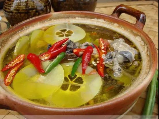 這是云南臨滄的一道特色風(fēng)味佳肴,以云縣、臨滄交界地羊頭巖一帶最有名,這里盛產(chǎn)木瓜。主要原料是臘火腿、白花木瓜、山地子雞。這道菜不僅吃起來(lái)口感絕佳,還有保健價(jià)值。木瓜在中國(guó)素有“萬(wàn)壽果”之稱,顧名思義,多吃可延年益壽,舒筋活絡(luò)、健脾養(yǎng)顏。