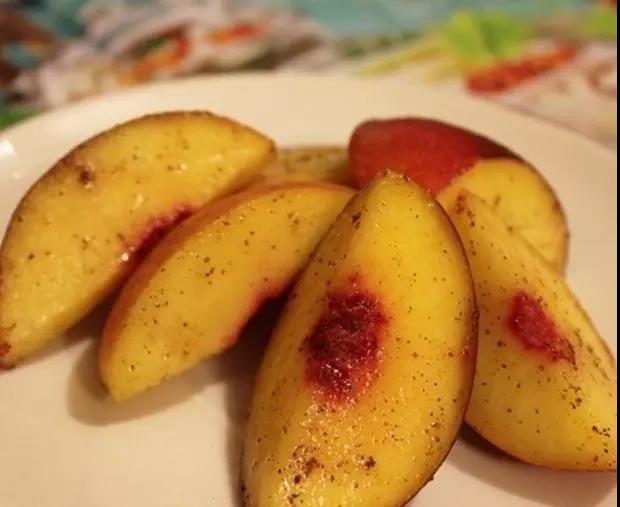 將小脆桃洗凈瀝干,用鹽將桃子搓揉均勻,然后將有機(jī)冰糖與甘草粉混合打碎,拌入桃子中,腌漬一天即可。