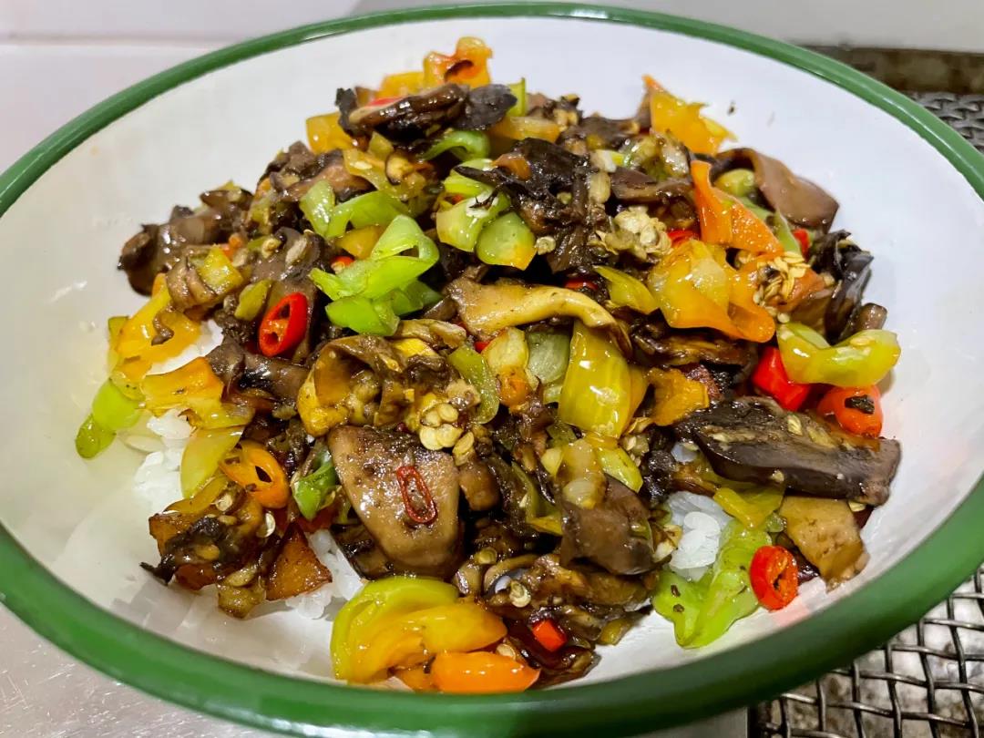 牛肝菌燜飯也是一絕,最好選擇砂鍋,將牛肝菌、青椒、米飯放入鍋中,加入適量水和油,小火慢慢燜,燜熟后揭蓋的瞬間就能讓人為之傾倒。