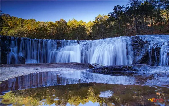 大自然的天工之作,造就了水城河數(shù)道不同類型的瀑布,河床兩岸巨大奇特的紅砂巖與原生植被交融一體,形成靚麗景觀。