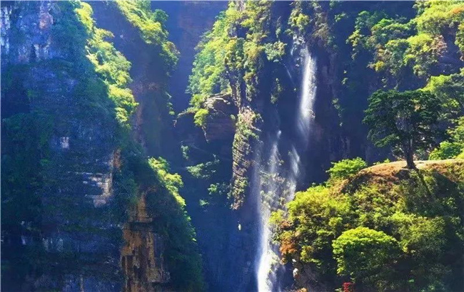 在大裂谷的峭壁上,修建有彎彎曲曲的棧道,狹窄的棧道里經(jīng)常能碰到趕騾子的老鄉(xiāng),讓路難度系數(shù)五顆星。為了確保游覽安全,景區(qū)在棧道周邊安裝了護欄,站在棧道上,可仰觀兩岸絕壁,俯視幽谷秘境,看瀑布垂簾,聽水流歌唱……