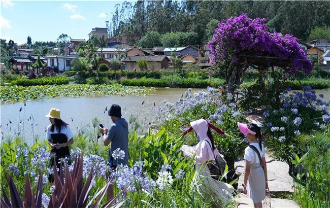游客可以沿著花間小路盡情玩耍,整片花田就像畫家濃墨重彩油畫場(chǎng)景中的片片色塊,與清澈湖面無縫相接,賞花的同時(shí)還能一睹湖光山色。