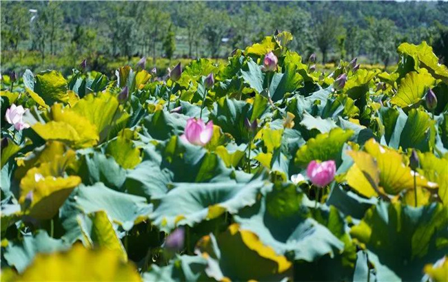 荷塘周邊建有觀賞棧道、觀賞亭,微風(fēng)拂過,碧綠的荷葉挨挨擠擠,星星點(diǎn)點(diǎn)的荷花嫣然搖動(dòng),在綠葉的陪襯下,如落入凡塵的仙子,美得不可方物??諝庵酗h著淡淡的荷花幽香,讓人忍不住輕嗅。
