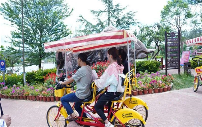 此外,雙人和多人觀光自行車設(shè)計(jì)新穎,車頂還安裝涼棚。騎著觀光自行車,一路欣賞濕地公園美景,給你不一樣的夏日休閑公園之旅。