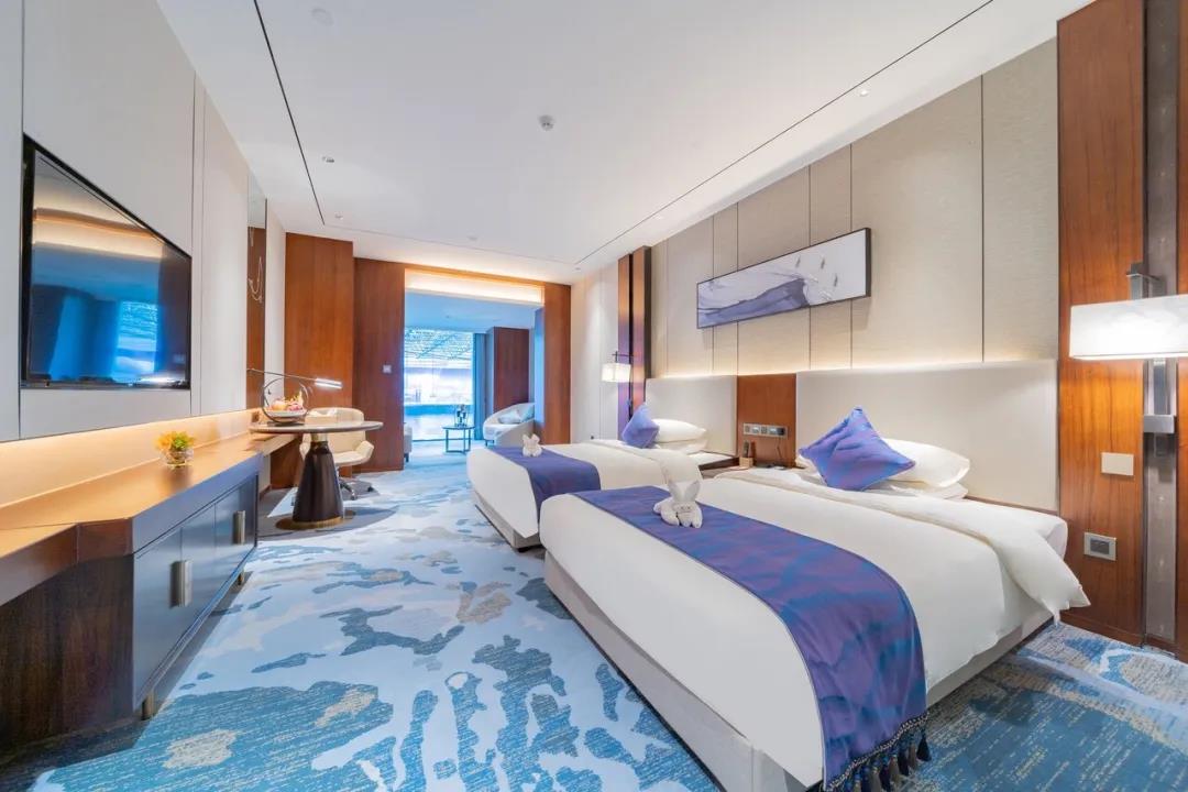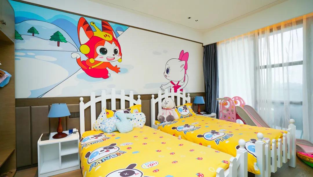 融創(chuàng)萬達(dá)酒店嘉華酒店擁有超大親子湖景房,湖景大床房與兒童房與電視墻一門之隔,隔開的是夫妻浪漫湖景房和孩子童稚小樂園。