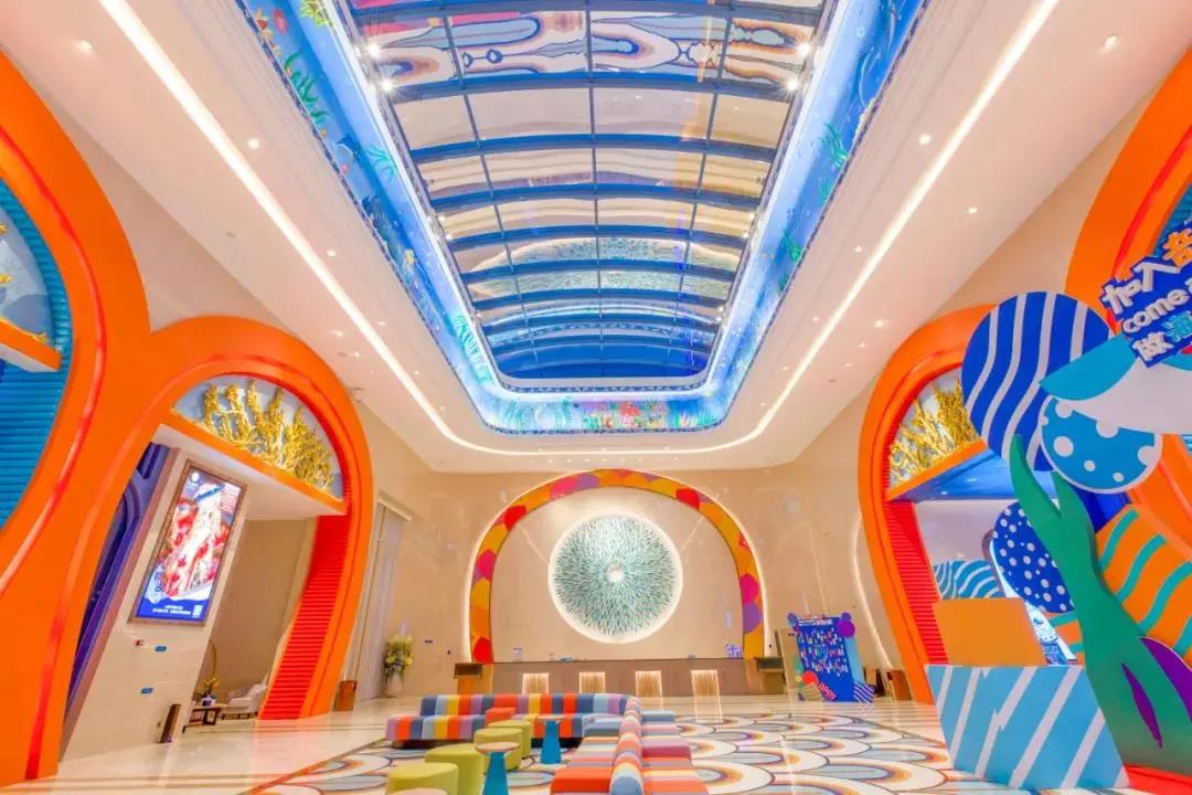 酒店外層顏色是溫馨的馬卡龍色系,門口有卡通的海豚先生和海豚小姐,超可愛。正對酒店大堂有超大水族箱,里面有魔鬼魚、鯊魚,這也是這個(gè)酒店的網(wǎng)紅打卡點(diǎn),堪稱云南小亞特蘭蒂斯,716間海洋主題房,走廊房卡都融入了海洋元素,酒店的每一個(gè)角落都充滿了海洋的氣息。
