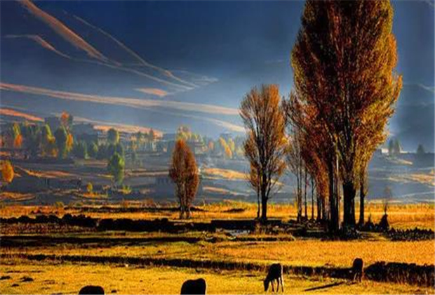 傍河鄉(xiāng)有全世界海拔最高、面積最大的青楊樹林,金秋時(shí)節(jié),一片金黃,頗為壯觀。