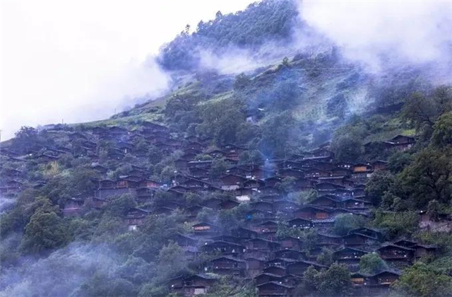 若是從遠(yuǎn)處縱觀整個村落,枯樹、老屋、云霧,就像一幅水墨畫,讓每一個人沉醉。