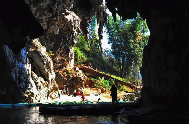 坐上小船進(jìn)入洞中,洞外嘈雜的人聲、水流聲會(huì)完全消失,只有小船輕輕劃過水面的音律和鐘乳石水滴滴落水面的聲息。