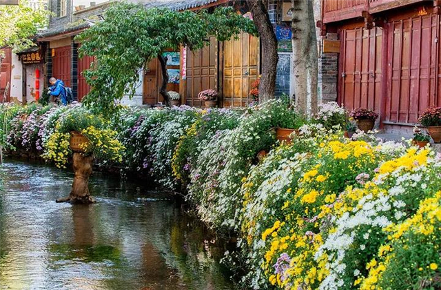 麗江古城內(nèi)絢麗的秋菊,很好地詮釋了這句詩。下面就跟隨云南傳媒公司小編去看看詩一般的古城。