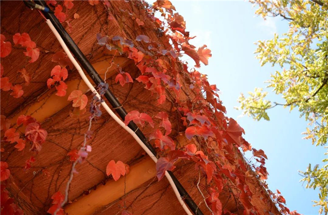 攀爬在斑駁墻壁上巴掌大的葉子,悄悄地爬滿一面墻,火紅的顏色愈演愈烈,就等著最后一陣秋風(fēng),把它們吹落到地。