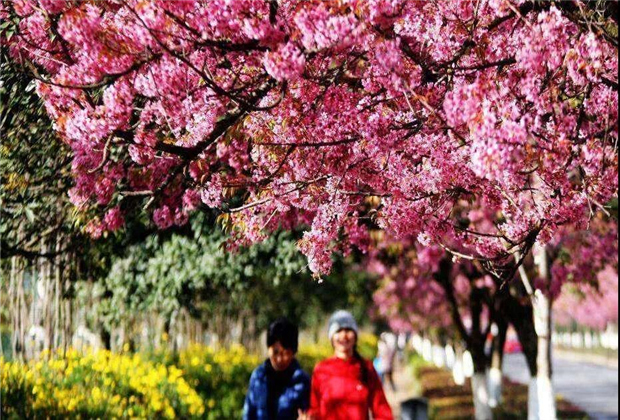 另一邊,在昆明,這個夏無酷暑,冬不嚴(yán)寒的“春城 ”,冬櫻花大道每年都火上熱搜,紅塔西路、圓通山、環(huán)湖東路、龍泉路、彩云路…一棵棵粉色花朵,為冬天的昆明增添了最浪漫的色彩。