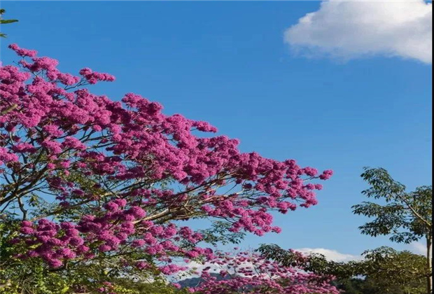 在西雙版納勐??h,櫻花有3個品種:苦櫻花、大櫻花、球形櫻花,看鳥語歡歌,一路的芬芳,自然美的一切陶醉心間。