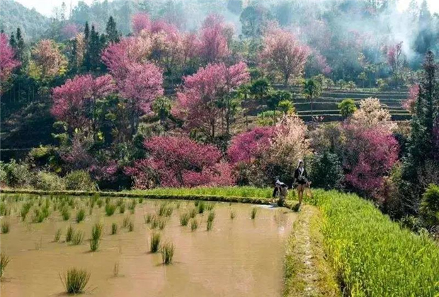 紅河州的櫻花谷,是一個集櫻花和梯田于一體的風(fēng)光盛景,是一個近乎世外桃源般的山谷,云海環(huán)繞山間,遠(yuǎn)處是村莊冒出的裊裊炊煙,任誰都打攪不了那份幽靜。