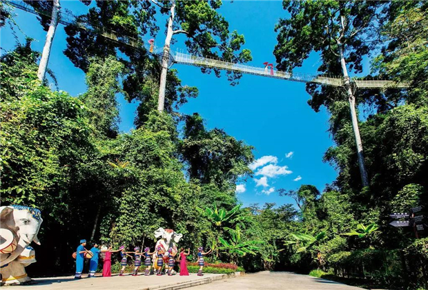 你可以在熱帶雨林中穿梭,到勐臘縣的望天樹景區(qū)感受一下,20層樓高的望天樹上懸掛的“空中走廊”。