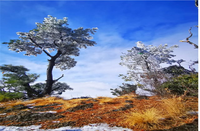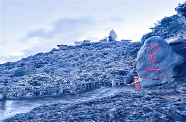 冬日的雞足山,更顯莊嚴(yán)神圣,卻又多了幾分靈動(dòng)。仿佛只需一夜,雪花便能灑滿(mǎn)大地,雞足山變成一片銀白。飄落的雪花掛滿(mǎn)枝頭、散落在