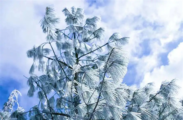 羅平山是洱源縣境內(nèi)最高的山峰之一,四季風(fēng)光秀美?!按笱呵嗨?,青松挺且直?!倍绽铮_平山上,雪花將山間染成純白色,樹(shù)葉上結(jié)滿(mǎn)了厚厚的冰晶,仿佛要把弱小的葉片壓彎,但它卻依舊保持著自己的形狀,不肯讓步半分!