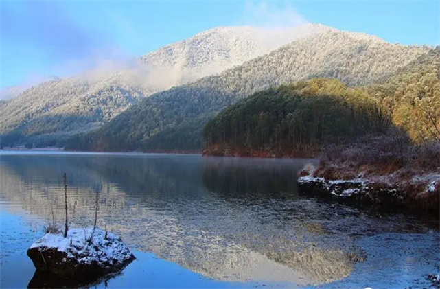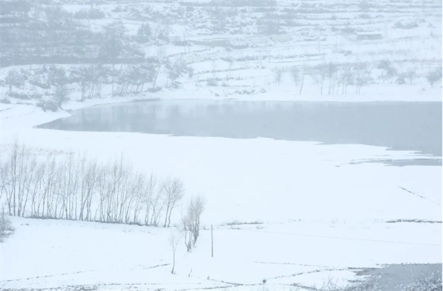 被雪覆蓋的玉華水庫(kù),顯得靜謐平和。山水墨色和純白的雪色相互映襯,仿佛一幅潑墨山水畫(huà),美得不像話(huà)!