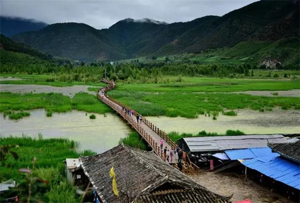 草海中最著名的是有著“天下第一鵲橋”之稱的走婚橋,它是草海蘆葦叢中延伸出來的一座長達300米的木橋。走婚橋橫跨草海,穿過蘆叢,直達兩岸村落,為兩岸村民、“走婚”的“阿夏”們提供了便捷的通道。