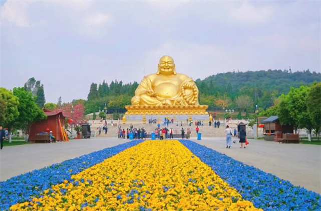 沿1999級臺階延綿而上,到達登頂處,眼前豁然出現(xiàn)了世界上最大的笑佛,在這彌勒顯圣之所,佛光普照大地。彌勒佛笑看千年,護佑眾生,讓人們得到心靈的慰藉和依歸。