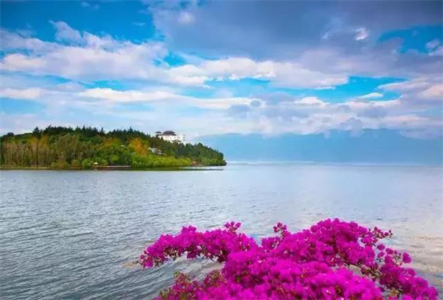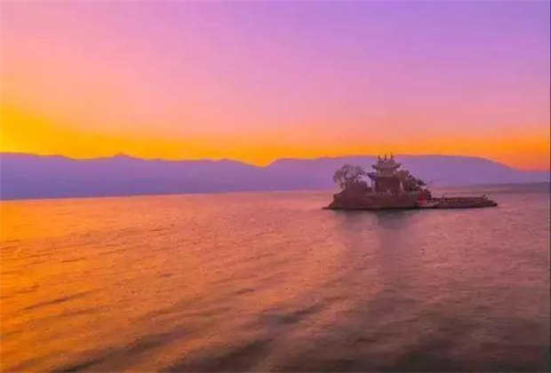 玉幾島,是三面環(huán)洱海的半島,洱海西面有蒼山橫列如屏,東面有玉案山環(huán)繞襯托,空間環(huán)境極為優(yōu)美。
