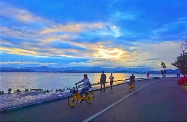 冬日里,依水而立的水杉樹(shù)褪去了漸變的青翠,逐漸變紅。你可以租一輛光觀車,實(shí)現(xiàn)你理想的復(fù)古暢游洱海之旅;可以騎一輛自行車,體驗(yàn)自在如風(fēng)的感覺(jué);也可以慢下腳步、靜下心來(lái)、親近自然、享受生活,在不同場(chǎng)景的玩法中感受生態(tài)健康的生活方式,遇見(jiàn)更好的自己。