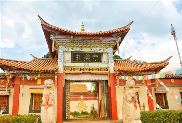 扎美寺現(xiàn)為云南省重點(diǎn)文物保護(hù)單位,始建于明代嘉靖年間,為藏傳佛教黃教格魯派寺廟,寺內(nèi)至今保存有一棵730多年樹齡的元代梅樹,被國家列為全國7株“古梅樹之王”之一。