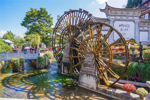 玉龍雪山的水嘀嗒、嘀嗒從山尖融化,滾落山澗河湖……古城、束河的水嘩啦、嘩啦繞著小橋,流進(jìn)千萬家……金沙江的水轟隆轟隆三江并進(jìn),翻滾奔騰南下。