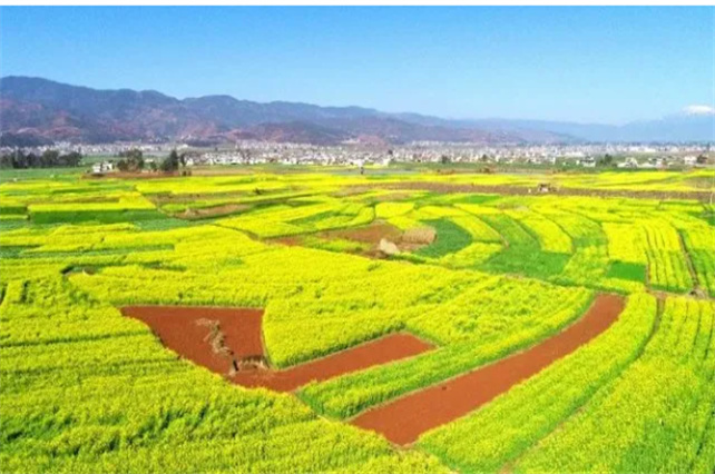 巍山廟街添澤村,2.3萬畝油菜花全面盛開,美上了《光明日報》頭版。雨水,不妨到那兒打卡,遠觀成片油菜花,感受花海的壯麗,近觀一株株油菜花,品花兒的清麗。