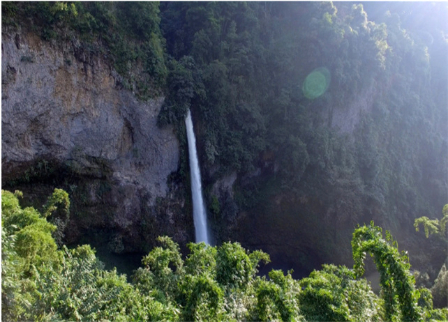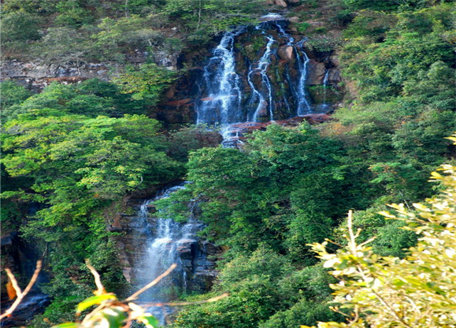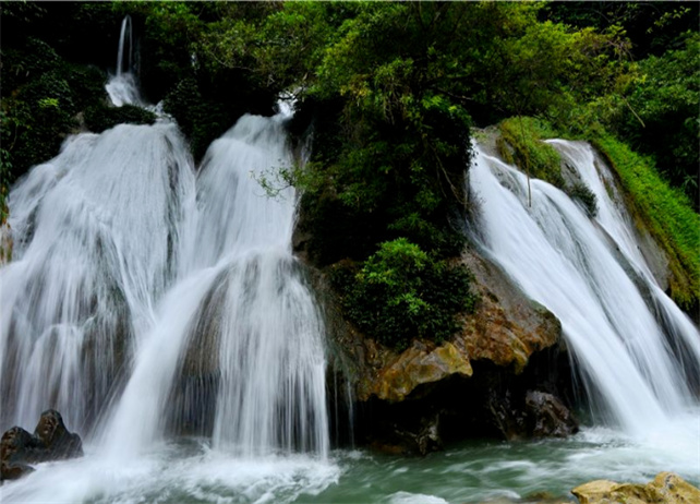 石屏縣昌明九臺瀑布位于龍武鎮(zhèn)昌明村東南方向,深藏在茂密的原始叢林峽谷之中,瀑布最高落差達到40余米,形成各具特色的瀑布群,由于瀑布發(fā)源地與大橋河落差數(shù)百米,河道狹長所以水流終年不息。