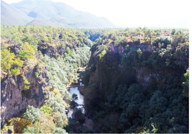 峽谷長90公里,谷中有各種鐘乳、枯藤、怪樹、奇石、珍禽、鳴鳥、飛瀑。這里是麗江著名的文化遺址之一。