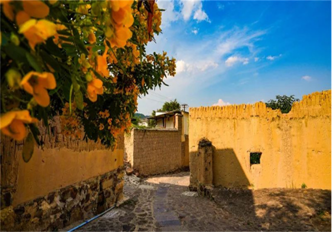 村莊的土掌房、蘑菇房等各具特色的房屋建筑沐浴在暖陽(yáng)下,和清新春色構(gòu)成一幅靚麗的春景圖。它們靜靜等著遠(yuǎn)方的客人走入村莊,留下串串腳印。