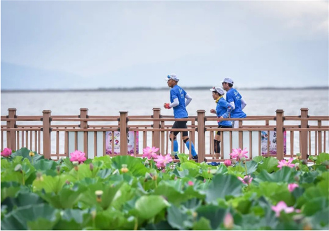 這里的荷花爭奇斗艷,水草蕩漾在清澈的湖水上,簇簇蘆葦星羅棋布。市民、游客可暢游生態(tài)濕地美景,在游船中賞荷,還可以踏上異龍湖環(huán)湖生態(tài)廊道,體驗生態(tài)康養(yǎng)之悠然。