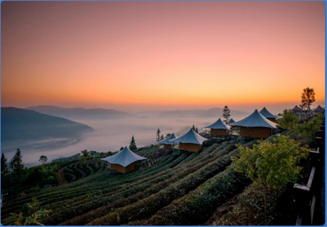 云漫營半山酒店在建設(shè)中引入了諸多創(chuàng)新理念,受到社會(huì)各界高度贊揚(yáng)和廣泛關(guān)注。云漫營半山酒店位于生態(tài)環(huán)境優(yōu)美的茶山之上,與大自然緊密結(jié)合,創(chuàng)造性地選用了木屋、帳篷這類裝配式輕型結(jié)構(gòu)建筑,藏于茶山,隱沒在云海間,實(shí)現(xiàn)了人與自然、建筑物與自然和諧相處,“綠水青山就是金山銀山”的生態(tài)發(fā)展理念貫穿于建設(shè)到運(yùn)營全過程。