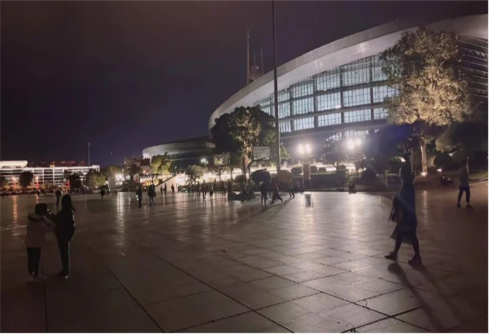 全民健身中心的區(qū)域內(nèi),有一個(gè)巨大的廣場(chǎng)。有人說這里是孩子和狗子的天堂,然而,實(shí)際上這里容納了從老到少、從男到女的飯后娛樂時(shí)光。