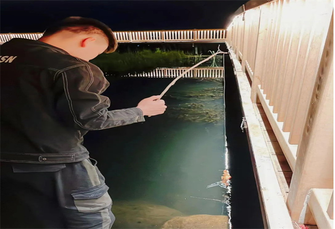 偶遇一對(duì)情侶,帶著自制的釣竿和網(wǎng)兜來釣小龍蝦,看著他們旁邊空空如也的塑料桶,想來還沒有什么收獲,也許他們注重的也不是收獲,而是一種夜釣的樂趣吧。
