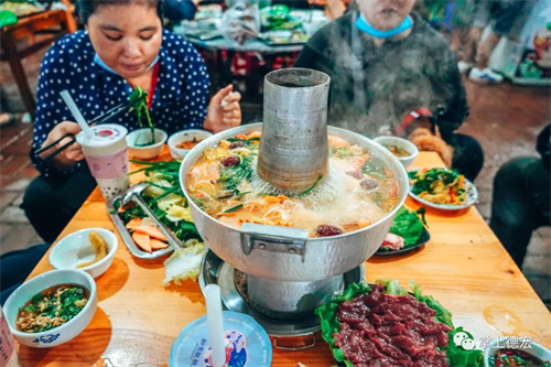 酒香不怕巷子深 客人坐得滿滿當當?shù)摹居屑倚』疱仭?藏在夜市的盡頭處 每天能賣上百桌 素菜40多種,葷菜30多種 小份又新鮮豐富的食材 讓客人不用擔心人少吃不完 還能任性地挑選多種心愛的食材 深受食客的喜愛 老板娘經(jīng)常用視頻 記錄客人來店里的熱鬧氛圍 發(fā)在網(wǎng)上后,引發(fā)不少關注 老板娘談及受歡迎的原因 “火鍋和夜市都有濃濃的煙火味” “可能是因為這兩個因素,小火鍋都有” 圖片 夜市的篷布之下,狹窄的過道桌距 冒著的騰騰熱氣,老式的炭火爐子 一涮一夾之間 充滿了【有家小火鍋】獨有的煙火氣