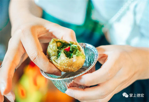 怎么能不試試這個網(wǎng)紅小脆球 這個名叫Pani Puri的印度爆款美食 外觀看起來非常的可愛、吸引人 2塊一個的小脆球 老板一晚上可以賣上百個 深受男女老少的喜愛 原本頗“印度”的原味 經(jīng)過老板的改良 變成了適合德宏人口味的酸辣味 入口的瞬間非常奇妙 爽脆的外殼、軟嫩的土豆內里 空心小球中加上 解膩的洋蔥、辣椒、瑪莎拉等調料 一口咬下去滿口爆汁 一口一個,找到了童年吃食的快樂