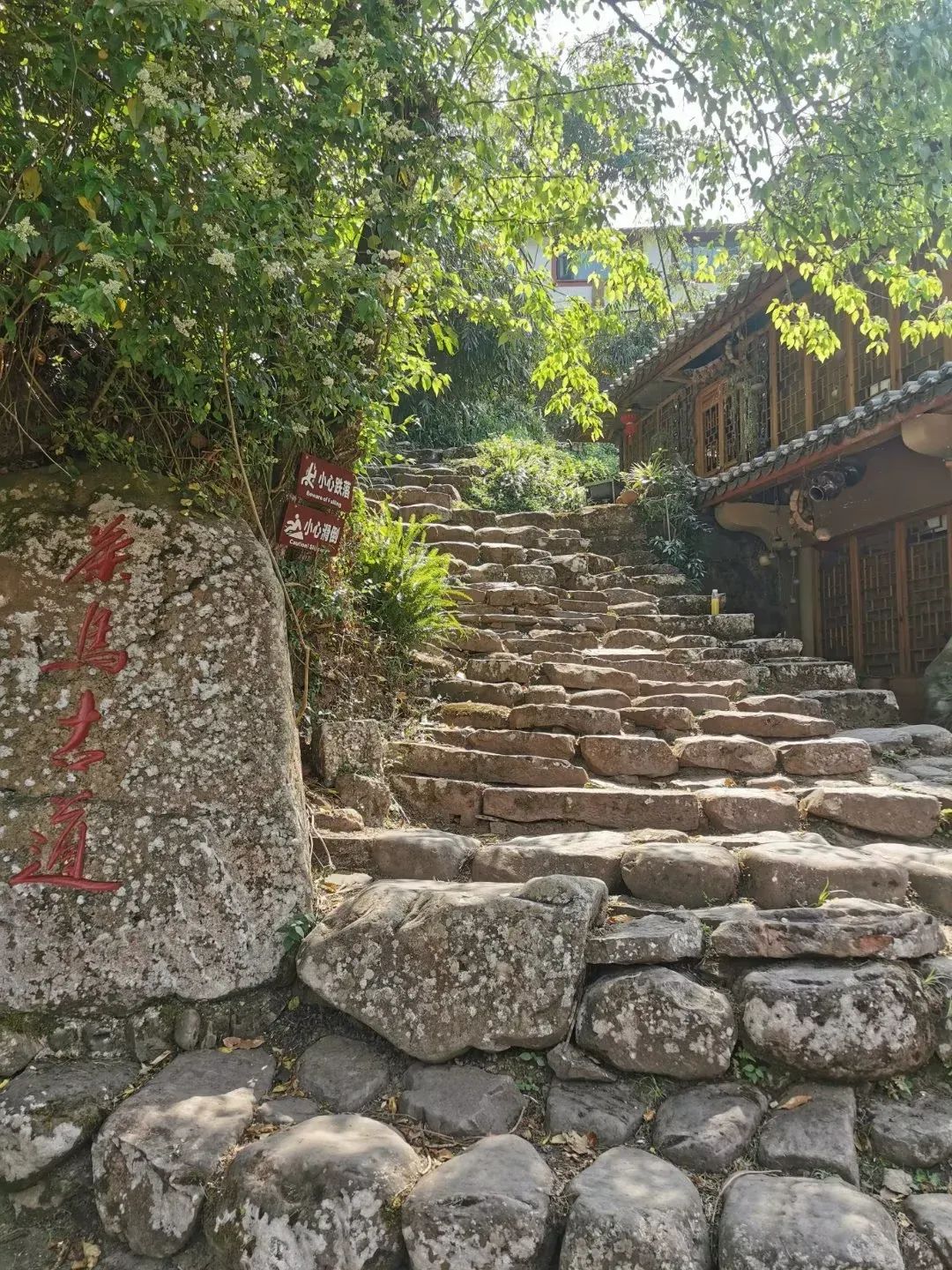 迎接您的是那條被歲月磨礪得光滑如鏡的石板路