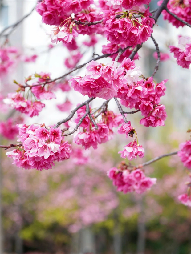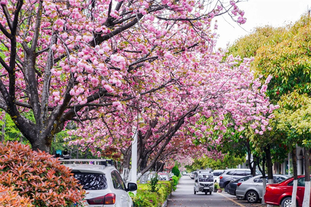 ,多了幾分悠然的詩(shī)意。高樓大廈間,櫻花的粉嫩打破了建筑的硬朗線條,讓這條繁華的大道滿是春日的靈動(dòng)。