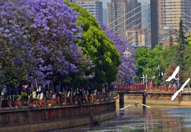 4月的昆明,持續(xù)近半年的“人鷗之約”暫告一段落,但春城依舊生機(jī)勃勃——轎子雪山杜鵑花盛放,藍(lán)花楹正醞釀紫色浪