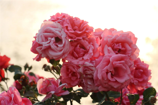 當(dāng)藍(lán)花楹的紫色風(fēng)暴蓄勢(shì)待發(fā),樹(shù)狀月季已以磅礴之勢(shì)席卷全城,將主干道、地鐵口、街角巷陌編織成“人在花中行”的