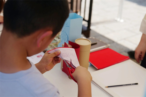 來自北京的多個非遺項目集中亮相,彩塑京劇臉譜、曹氏風箏、宮廷京繡以其精湛的技藝引人駐足。在剪紙體驗區(qū),紅
