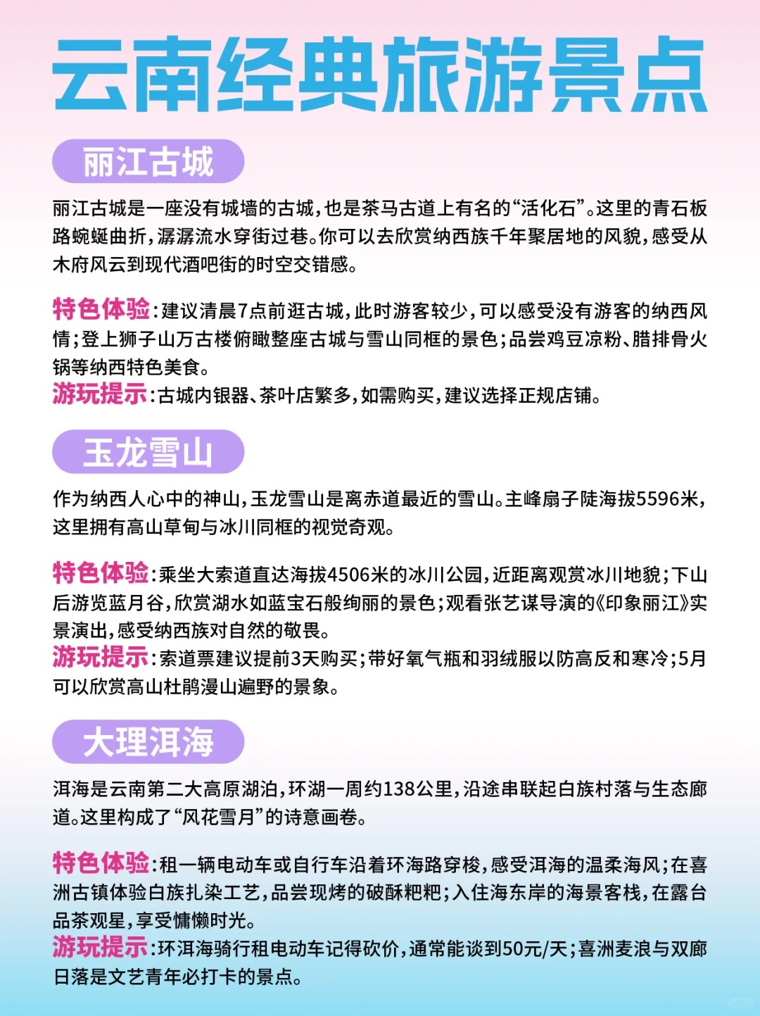 想來(lái)云南旅游的小伙伴,這是一份云南經(jīng)典旅游景點(diǎn)的詳細(xì)介紹,希望能幫助你更好地規(guī)劃行程