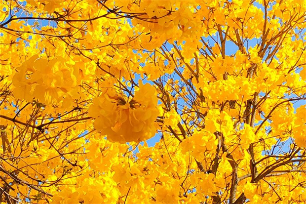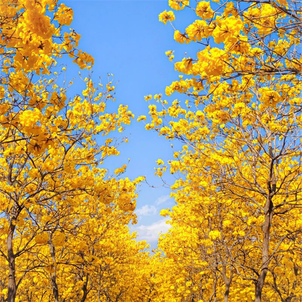 綜合保稅區(qū)沿線,一樹(shù)樹(shù)金黃宛若風(fēng)鈴搖曳,奏響了春天的序曲。