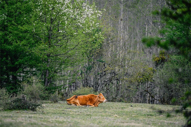 踏青賞梨之余更能邂逅這里的原生態(tài)之美澄澈溪流穿壩而過岸邊草甸柔軟如毯牛羊悠然漫步銅鈴聲在山谷間輕輕回蕩周